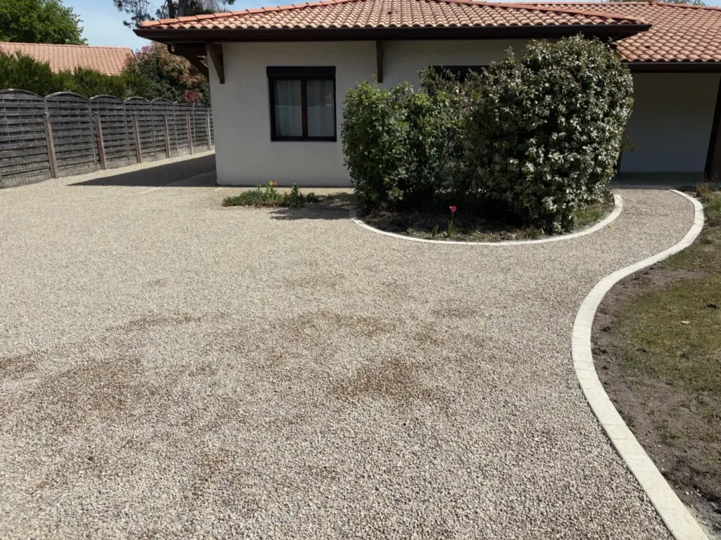 Réalisation d’un enrobé pour mon parking avec un très beau rendu. Surface lisse, solide et esthétique.